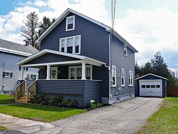 From the curb appeal to the beautifully updated interior features, you will have to call this one home! It will be hard to find a project on this home as the seller has done them already. The exterior has new vinyl siding, vinyl windows, fabulous front porch, spacious rear deck and large back yard that is fenced in, allowing privacy, or a perfect spot for the children or family pets. The front foyer exposes the staircase, while the French doors lead you directly into the living room. Everything in the house is tastefully updated and the colors pull the house together perfectly. The kitchen has been updated, offering tasteful cabinetry, granite counter tops, and modern appliances. Between the kitchen and the living room is the large dining room with a beautiful built-in and glass doors that lead you to the rear deck. The second floor has three nicely appointed bedrooms along with a full bathroom. The wood floors in the house are beautiful and the custom window treatments are complimentary to the rest of the home. The basement reveals an oil FHA furnace along with a heat pump for your hot water. If one desired to not heat with oil you have an option of using the pellet stove that is in the living room. The paved driveway leads you to the detached one car garage that is close to the house for convenience. Simply put, a beautiful home!