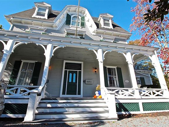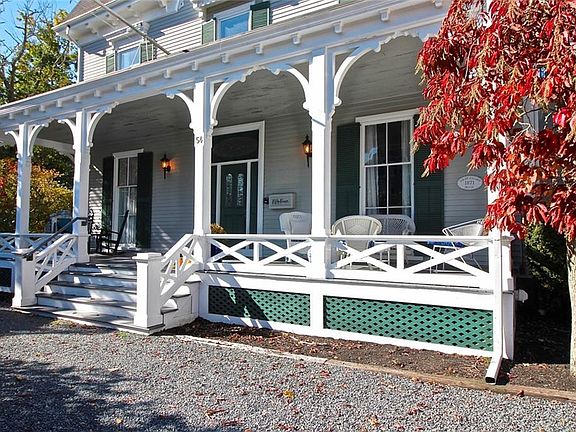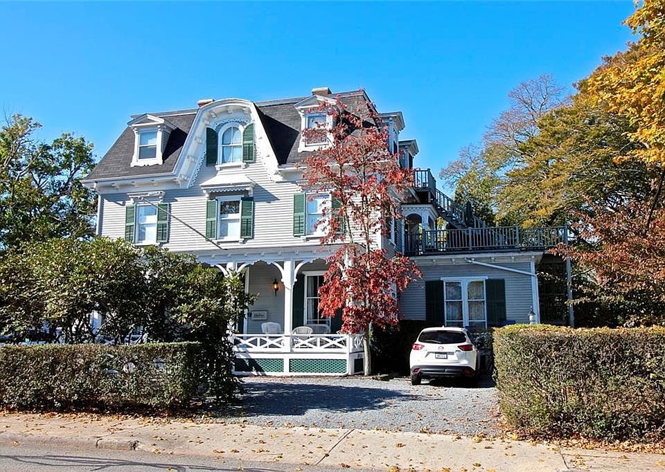 The Sarah B. Hazard House Two Bedroom Townhouse Condominium in a Stately & Elegant Victorian designed by George Champlin Mason in 1886 located on Desirable Kay Street. The beautiful front porch leads to a gracious foyer has 10 foot ceilings with a sweeping stairway to the 2nd level entry of the unit. The Foyer Entry to the 2nd floor unit has Parquet floors leading to a spacious open floor plan. The renovated eat-in kitchen, with granite counters and stainless steel appliances, connects to the sunken living area forming a great room easy for entertaining. The great room is oversize with a door to the outside decking area. The half bath was completely renovated several years ago. The 2nd level has 2 bedrooms & wonderful renovated bathroom with oversize walk in shower. Hardwood floors throughout and freshly painted. Laundry & large private storage room are in the basement. The grounds are like a sanctuary with specimen trees and mature gardens. In addition Pets are allowed and there are 2 assigned parking spaces. The central location is walkable to Fine Restaurants, Shops, Bellevue Ave and all Newport activities. Established Association, Self-Managed and Low Fees! There is much to love.