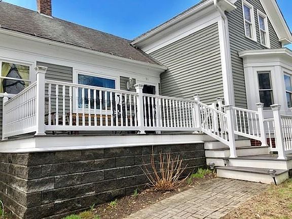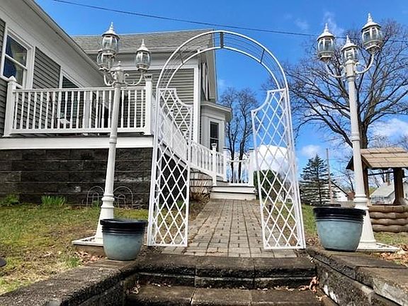 This lovely updated colonial includes a bright sunny kitchen with a huge island and a dining room with French Doors that open onto the covered patio and inground pool! The bathroom has a Jacuzzi tub to relax at the end of the day, and the living room has a pellet stove and hearth to warm you on a winters day. The tongue and groove walls make this home so welcoming! Upstairs you'll find 2 bedrooms including a large master bedroom, and downstairs you'll find a 3rd bedroom. The basement has a partially finished room, and walks out onto the driveway. The 2 car garage has 10' electric doors and 200 amp wiring. Inside the basement you'll find a new Buderus oil fired boiler with an oil fired water heater as well as a geothermal electric water heater! Other updates include vinyl siding, new windows, insulated doors, new retaining walls, decorative lighting outside, a newer architectural shingled roof, and a beautiful trex deck overlooking the town park where you can enjoy the summer concerts!