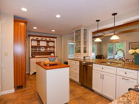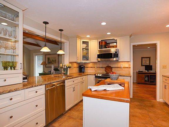 Updated colonial in a quiet Ashland neighborhood, a fantastic home not to be missed! Enter the gorgeous kitchen w/ granite counters, tile floor, custom cabinets, island, ss appliances. Kitchen open to beautiful addition utilized as dining room w/ lovely built-ins, exterior access & overlooking beautiful back yard oasis. Much of 1st floor refinished hardwoods (2018). Living room w/ built ins & cozy window seat, family room w/ wood fireplace & convenient 1st floor office. Half bath includes granite topped vanity & tile floor. Head upstairs to 4 bedrooms each w/ newer carpet. Lovely master en suite w/ 2 closets, master bath w/ tile floor & shower. Updated main bath w/ granite vanity, tile floor & tub/shower. Extra living space in partially finished basement. Beautiful outside space, wonderfully landscaped yard w/ large deck, swing, in-ground heated pool & abuts Ashland town forest. Windows 2017, exterior paint 2017, furnace 2010, roof 2002. Amazing commuter location near Ashland train!