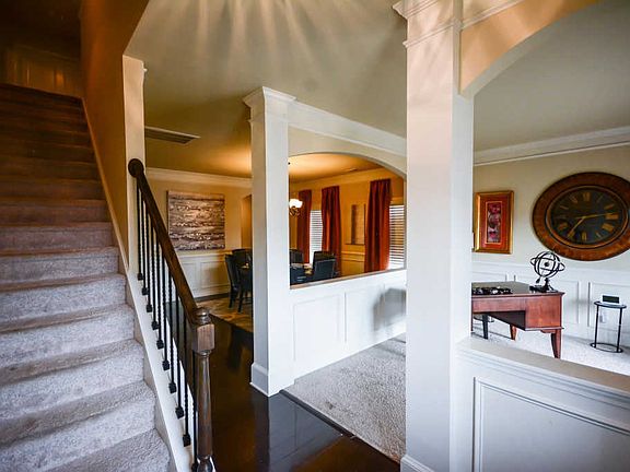 This stunning former model home is looking for a new owner.Will it be you?Upon entry you are greeted with gleaming dark hardwood floors.To your right you have the formal living space/office.The downstairs has beautiful archways looking from one room to the next.Off of the office is the elegant dining area with crown molding and wainscoting. An open space could be used as a butlers pantry leads to the gourmet kitchen. You have plenty of space to prep all of your meals on your granite counter tops. Also equipped with dark brown cabinets and stainless steel appliances your recessed lighting shines the way to a bar top peninsula and a breakfast nook with seating for the whole family.Open concept kitchen and family room. The downstairs has one guest bedroom and a full bath.The two car garage was converted into extra living space with a half bath so you can make it what you want.Upstairs is the master bedroom with siting area and another two bedrooms, full bath, laundry and loft. Come see this home today!