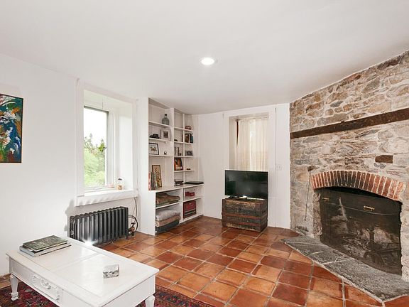 Private & quiet Country Retreat: c.1740 Stone Colonial overlooking Large Pond on 8 Acs bordering 120Acs of Preserved Parkland. Features Legal 1-Bedrm Rental, 4 Fireplaces,historic yet very modern feel. Set well off the road, down a private tree-lined drive, visitors are welcomed by captivating views of this amazing historic Stone Home with its large Pond & wildflower gardens. This striking home offers dramatic & soaring 2-story open GreatRm/DiningRm open-concept adjoins Living Rm, Kitchen & adjacent Family Rm. Incredible Bedrm overlooks Pond, Den in Loft over Great Rm, 2ndBedrm near Loft+Full Bath, 3rdBedrm on 1st Floor w/ en Suite Bath. 4thBedrm in Rental w/Living Rm +Kitchen. Great Walk-Out Basement. Perfect for Horses--Addt'l Preserved ~200 Acs. across the street which eventually lead to rail-trail system.
