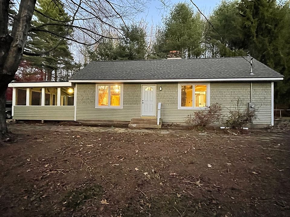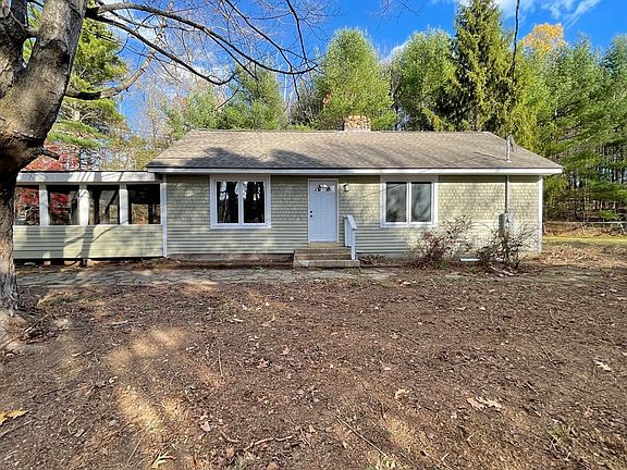 Come and see this cute Brimfield ranch ideal for one level living and outdoor enjoyment. This two bedroom home will charm you with its unique layout. One bedroom on either side of the eat in kitchen, living room with beautiful wide plank floors leading to a lofted space that would make a great home office space. Expansive screened in porch makes enjoying your private surroundings a dream. New roof, fresh paint inside and out, new ductless mini splits, new appliances, flooring and septic system mean no worries for the buyer. Desirable location in the beautiful town of Brimfield puts you near to the farmer's market, walking/hiking trails, the world famous Brimfield Antique Fair and Brimfield Winery, while right down the road from Sturbridge restaurants and attractions and easy access to route 84 and 90 for commuters.