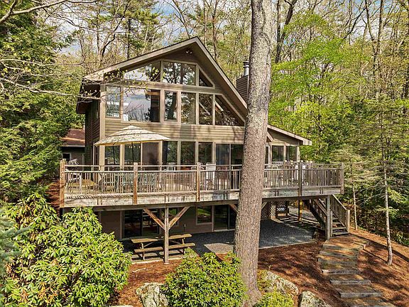 Your plans for this summer have just changed for the best. The property you have been dreaming of has just hit the market and you are going to love it. 1-acre of private land beautifully landscaped, looking S/W with an amazing beach that walks directly into your private Lake Winnipesaukee waterfront. The Dock is already in the water and ready for your boat. The home is a mix of contemporary and lake house style and from the moment you enter the property, you will see the home, garage and land have been lovingly care for since these owners had the home built in 1990. The large detached garage will be good for your vehicles and has much space for all the extras you need to store. The screen porch is a perfect size and my thought is you will spend many hours, dining, game playing and maybe even napping on this porch. You enter the large living room that features cathedral ceiling, a floor to ceiling fieldstone fireplace, wood floors all open to the dining room and kitchen. There is a 14' x 39' lakeside deck that you enter from the screen porch, living room or dining room and it's sized perfectly for your weekend gatherings. The 2nd floor has the primary suite offering your privacy and constant lake views. There is another two bedrooms and a 3/4 bath for your family & guests. The lower level walks out to the waterfront lawn, private beach and dock. The family room has the pool table, a wood stove for ambiance and room for all. The 5th bedroom with bath completes the lower level.