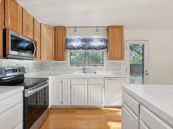 - Features: Breakfast Bar, Counter - Solid Surface, Dishwasher, Electric Range/Cooktop, Microwave, Refrigerator