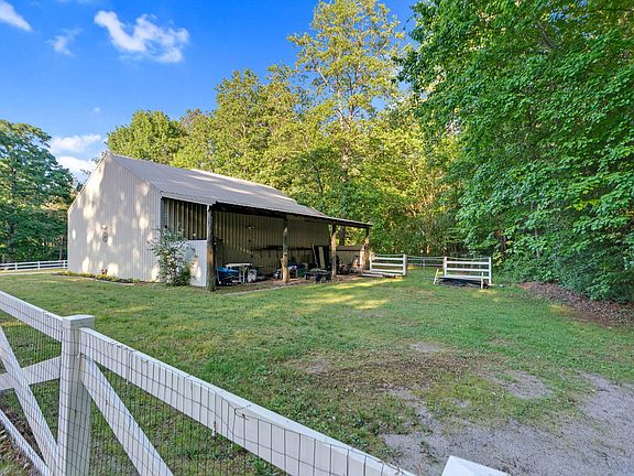 Tucked away in a peaceful and private setting, this gorgeous custom home offers the perfect blend of comfort, function, and wide-open space. With 3 spacious bedrooms and 2.5 baths, this beautifully designed residence sits on over 7 unrestricted acres, featuring established pasture ideal for animals or recreation, all bordered by mature woods that provide natural privacy and a serene backdrop. Inside, the home features a bright, open living space filled with natural light and complemented by tall ceilings that bring an airy, inviting feel. The layout flows effortlessly, making it ideal for both everyday living and entertaining. The main-floor primary suite is a true retreat, offering privacy and convenience, while the wrap-around porch—accessible from multiple points throughout the home—invites you to take in the tranquil surroundings morning, noon, and night. Beyond the home, a large multi-use outbuilding offers even more to love. Whether you're storing equipment, launching a new hobby, or diving into your next big project, this space has you covered. It even includes a climate-controlled room currently outfitted as a state-of-the-art kennel and grooming area—perfect for show dogs, but easily repurposed for your own unique vision. Dreaming of a home business, art studio, or home gym? The possibilities are endless. A lean-to off the outbuilding can be effortlessly converted into horse stalls, making this property an excellent option for equestrian enthusiasts as well. Whether you're looking to homestead, start a hobby farm, or simply enjoy a peaceful lifestyle with room to roam, this versatile property delivers.