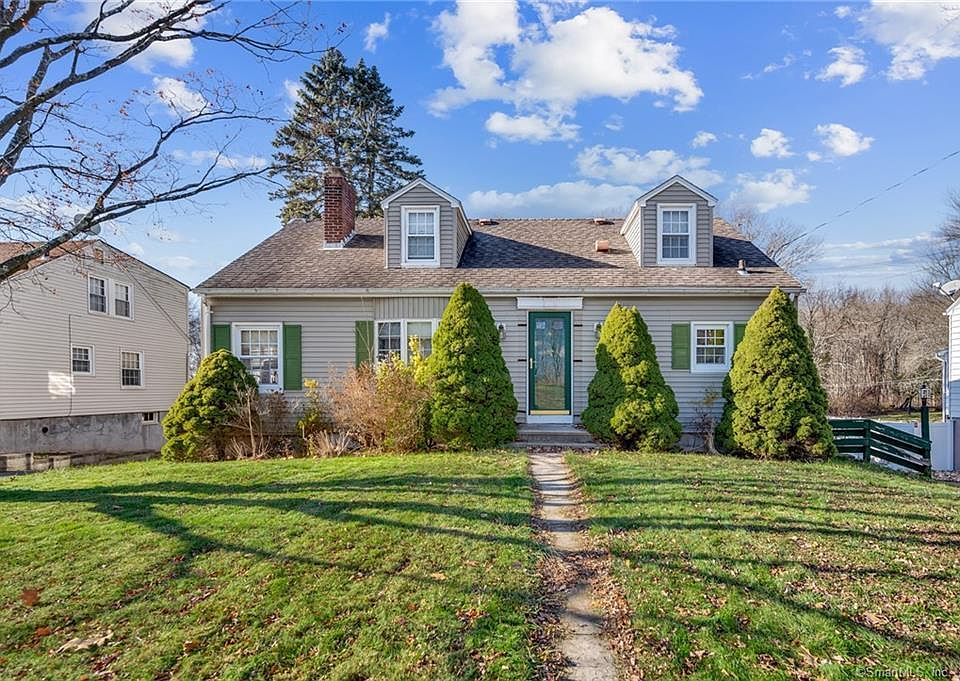 With a little updating, you can make this very spacious cape your own! The living room with wood fireplace, is open to a flex room which can be used as a dining room, play room or whatever the family wishes. Additional room on main level could also be used as an office, study or even a sunroom. Large eat-in kitchen/dining area with breakfast nook which has sliders leading to a large wrap-around deck. Hardwood floors throughout. All four bedrooms are on upper level. Two of the bedrooms have carpeting, with the hardwood floors underneath. Two full bathrooms, one on main level and one on upper level as well as a half-bath in basement. Full basement has with plenty of storage space as well as a walk-out to the large backyard with built-in pool, two sheds, grape vines with tressel as well as playscape. Liner for pool was replaced in 2009. Pump is new (2023). Hot water heater was installed in 2014. Attic fan needs belt. All furniture can stay, if buyer would like, except primary bedroom furniture and computers. There is a cat. Plz do not let it out. Thank you! ONLY when there is a lot of snow that has been packed against the home, there is just a tiny bit of seepage downstairs in the room all the way to the right in the corner. Never had any other water issues. The side door will be fixed or replaced. There will be a railing installed on the stairs on the side of the home and the cement that is broken on the side steps will also be fixed, prior to closing.