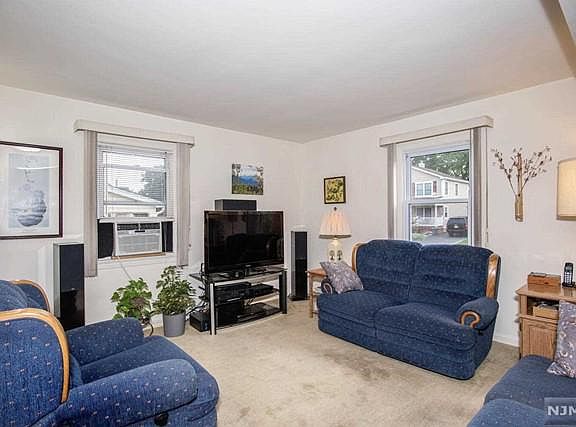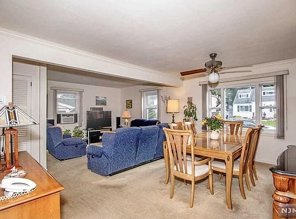 Move right in to this spacious 3 BR cape! Large entry breezeway, open living room / dining room. Modern eat in kitchen with quartz countertops, island with seating and storage, and stainless steel appliances. 1st floor bedroom and full bath. Upstairs two bedrooms. Newly painted and new carpeting. Basement has a separate outside entry leading to two semi-finished rooms plus storage and laundry. Newer furnace, hot water heater, and vinyl siding. One car attached garage with storage. Terrific location on quiet street close to Dumont's Memorial Park, Grant School, local shopping and NY transportation.