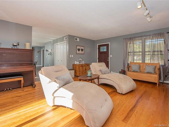 Meticulously maintained, 3-bedroom Colonial located on 2.03 acres is situated in desirable area of East Haddam. Oversized kitchen which is in the center of the home, features eat in dining with large bow window overlooking a serene backyard, new stainless steel appliances and plenty of cabinet space. The front to back family room has a wood burning fireplace, especially cozy on cold winter nights with sliders leading out onto the 3-tiered deck in the back yard. Hardwood floors compliment the formal living room and dining room, office /den area, with a half bath and laundy area that complete the first floor living. There are three generous size bedrooms on the upper level; primary bedroom has its own full bath with double sinks and oversized stall shower, with 2 more bedrooms and full bath on the second floor. Huge basement with endless possibilities, newer boiler/hot water heater, well pump and tank. Oversized, 2 car garage, with work benches and plenty of storage space. Home includes central air, 200 AMP service, plus generator ready and more. Property sits back from the road for privacy with lots of parking space. Close proximity to hiking trails, state parks and major highways. Do not delay, make this your new home today ** Please note stumps in the front are being cut down and the entire front yard will be raked out.