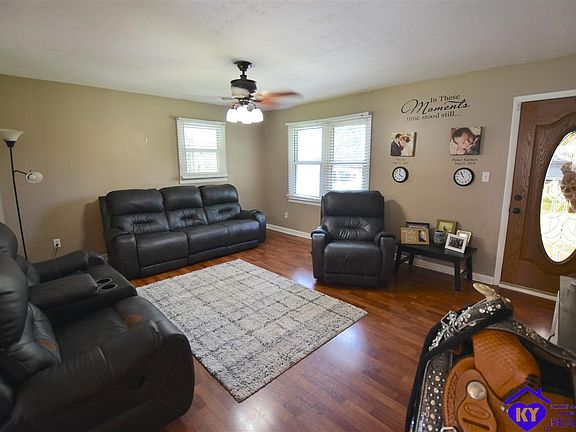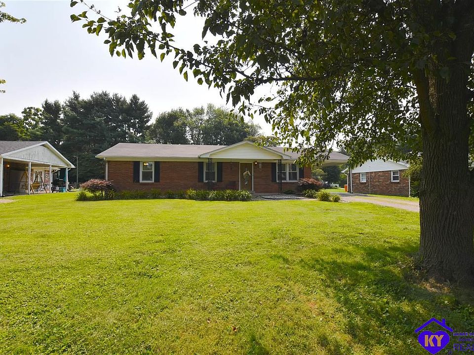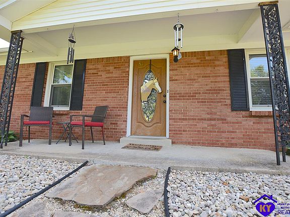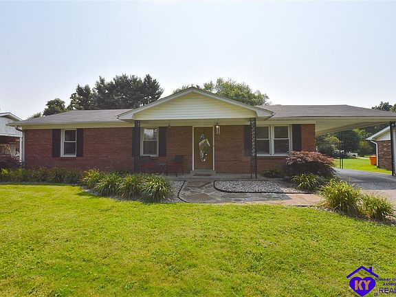 Welcome home to this charming, all brick ranch conveniently located in E-town! The covered front porch welcomes you in to the open living room, kitchen and dining area with laminate and tile flooring. The sliding barn door hides the laundry room and pantry area. Down the hall you will find the auxiliary bedrooms, hall bath and the owner's suite with its own private bathroom. The carport can be used for vehicles or relaxing. Large level lot offers plenty of room to play plus a shed. Call today to make this your new Kentucky home!