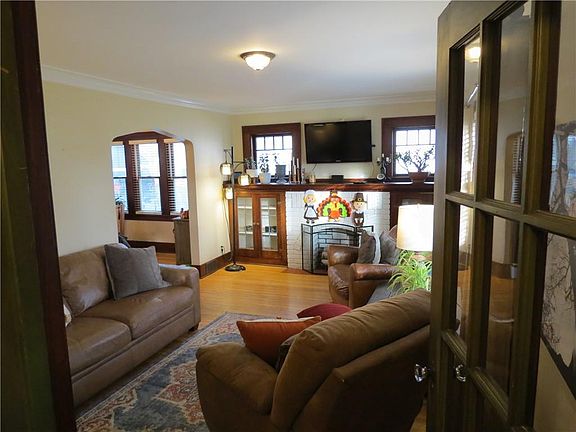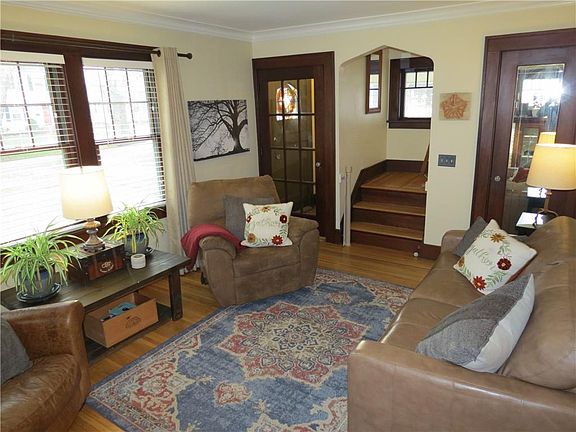 Move in ready classic 1928 Colonial 3 bedroom, 1 bath home! Beautiful natural woodwork, hardwood flooring with leaded glass and built-ins throughout. Freshly painted kitchen with new plank flooring. heated marble floor in updated bathroom. Spacious bedrooms located on 2nd floor with 200 plus sq ft of finished bonus space in attic with hardwood flooring. Replacement windows in dining room, bedrooms, and attic. Enjoy the professionally landscaped yard from the covered patio. Tree lined street with close proximity to shopping! Children's swing set and playhouse are not part of sale will be removed by sellers.