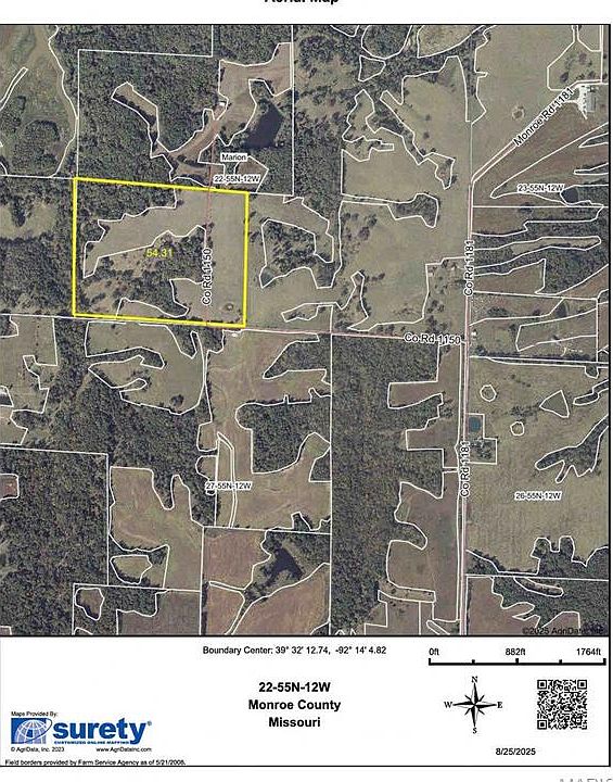 54 ac split off of 249-acre farm north of Madison, MO on dead end road. Approximately 34 ac in pasture & 20 ac in woods. Priced at $5,900 per acre