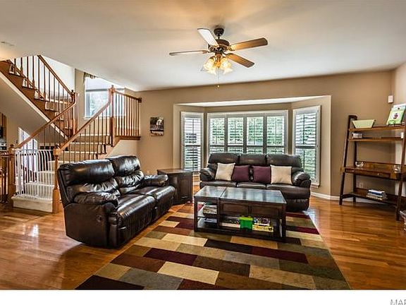 WELCOME HOME to this gorgeous 4 bedroom 2 story in the very sought after Estates of Fairfield Manor on a cul-de-sac lot! Beautiful hardwood floors flow through your main level built for entertaining. Updated kitchen includes crown molding, plantation shutters, newer stainless steel appliances, 42" cabinets, custom backsplash, and an abundance of counter space including a large butterfly island! Separate dining room with coffered ceiling and wainscoting for larger family gatherings. Family room features a floor to ceiling brick fireplace and a bay window with plantation shutters as well. Spacious main floor laundry and a freshly updated powder room off the kitchen. Sliding glass doors with built in blinds lead you out to your newer concrete stamped patio and large fully fenced backyard! Retreat to your vaulted master bedroom suite with large walk in closet and luxury bath. Three additional spacious bedrooms complete this stunning home that is ready to welcome its next lucky owners!