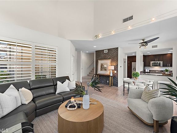 Welcome to 54 Morning Glory, a serene sanctuary nestled in the prestigious Sonoma Court of Rancho Santa Margarita. This delightful corner-lot townhome offers peaceful living with no immediate neighbors above or below. Step inside to discover a living room with soaring ceilings, an updated kitchen, charming dining area, and upgraded porcelain tile throughout the first floor and newly installed carpet, all designed for your comfort.