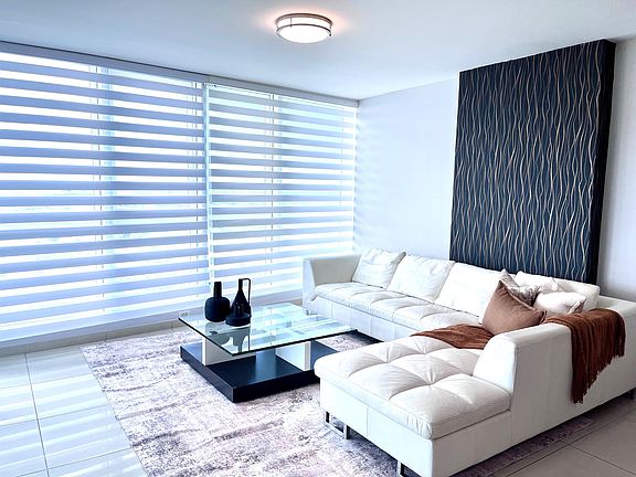 Beautiful apartment on the 20th floor, fully furnished and equipped, offers 2 bedrooms, 2 full bathrooms, and 2 covered parking spaces. The unit has curtains, lamps, 24 x 24 tiles, and floor-to-ceiling security windows throughout the apartment to appreciate the spectacular views, during the day and at night, from inside the unit as from the balcony. Comfortable kitchen and living area, connected in an "open space", ideal for entertaining. Aquablue is a modern condominium that offers all the "amenities" that the modern professional is looking for, 100% electric generator for the unit and the building, cistern, concierge service and 24-7 security, ample visitor parking, activity rooms, swimming pool, and gym, among other things. Long term lease