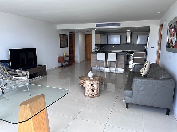 Rent this spectacular corner apartment on the 25th floor located at the prestigious Financial District. Enjoy a breathtaking view from your spacious balcony in a home that has 2 comfortable bedrooms, each equipped with a spacious walking closet. The master bathroom offers natural ventilation and a practical design with double sinks, ideal for your comfort and that of your family. In addition, you will have 2 cover parking spaces available for your convenience. This exclusive condominium offers several exceptional amenities: 100% generator for common areas and the apartment, 24-hour security and concierge service, ample parking for visitors and charging stations for electric cars. Relax by the pool or keep fit in the fitness center. Don't miss the opportunity to live in a place that has it all! One year contract