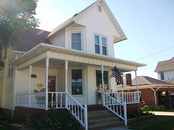 This 1 1/2 story, 4BR/2BA home is full of character, charm & includes many updates. It offers an open stair case, window seat, hardwood floors, replacement windows, vinyl siding on house & gar. 07, roof on house 16, roof will be replaced on gar. prior to closing. Central Air & A coil replaced 6/18 w/10 yr. warr. for new owner. Beautiful back deck & front porch stained in 18 & foundation painted in 17. There is also a 2 car det. garage w/concrete drive, nice back yard & main fl. laundry. There will also be new back storm door installed prior to close. This home is very unique & move in ready!