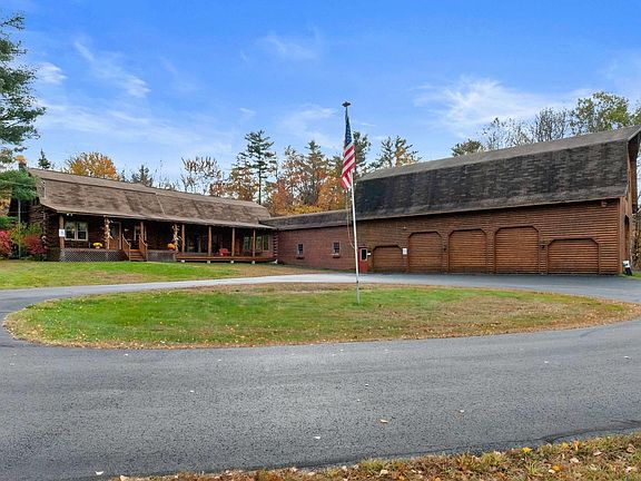 Close to Sunapee NH. This beautiful log home is located on a dead end road which turns into a class VI road. A large sun-filled family room, gas fireplace, huge 5 bay garage for storing your toys with a bonus room above. With over 10 acres, a pond for fishing and skating, open fields for gardening, paved driveway, full basement great for storage or a workshop. Walking distance on the class vi road to Crescent Lake. Use this property as a main residence, or a vacation get away or Airbnb...so many possibilities. Some photos have been virtually staged.