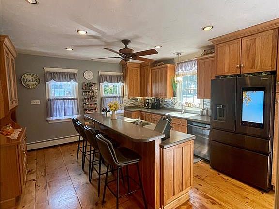 Charming Historic home in North Smithfield’s village of Slatersville, offers a rare blend of New England charm and modern conveniences. This beautifully updated 3-bedroom, 2 bathroom home features 2138 sqft of living space. The kitchen boasts plenty of natural sunlight, original wide-plank hardwood floors, newer stainless steel appliances and kitchen cabinets, corian countertops and a breakfast bar with seating for 4. The 18 x 27 ft. living/family room is the perfect place for entertaining with a wood burning fireplace. The primary bedroom on the main level has 2 walk-in closets with an ensuite bathroom with shower. Upstairs you will find 2 spacious bedrooms and a bonus room. Outside, you will enjoy a private fenced in backyard with plenty of spaces for entertaining; A 12x12 covered deck, with stairs leading up to the above ground 18 ft. circular pool, or on the expansive concrete patio. This property combines comfort, character and is conveniently located near rt. 146 and is approximately 20 minutes from Providence, and just over an hour to Boston. *Sale subject to Seller finding suitable housing/Actively Looking.