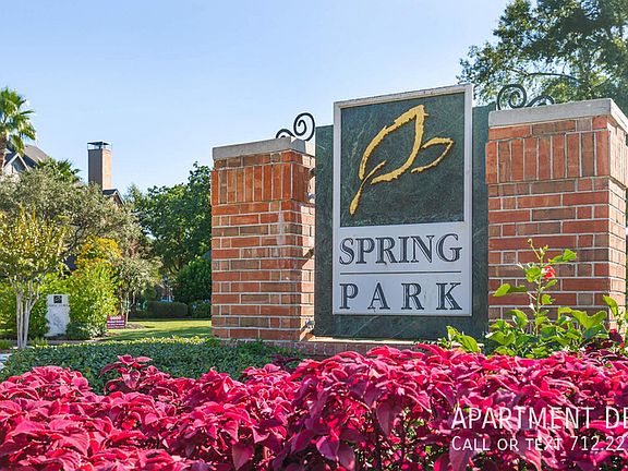REF: # H4021. Refer this number when you reaching us about this AD. Description: Welcome to Spring Park in Spring, Texas! We are located right off Interstate 45 with easy access to both the Hardy Toll Road and Highway 99/The Grand Parkway. Our prime location gives you direct access to dining, shopping and entertainment venues including TopGolf, # Hrricane Harbor Splash Town, Old Town Spring, and The Market at Springwood Village. Cats Allowed: one time fee: $350 Dogs Allowed: one time fee: $350 Lease Options: none: Other Fees: admin fee: $150, application fee: $50 Parking: garage: Property Information: built in 2016: , 307 units/4 stories: , furnished: Apartment Features: High Speed Internet Access, Washer/Dryer - In Unit, Washer/Dryer Hookup, Air Conditioning, Heating, Ceiling Fans, Cable Ready, Trash Compactor, Tub/Shower, Fireplace, Sprinkler System, Framed Mirrors, Dishwasher, Disposal, Ice Maker, Stainless Steel Appliances, Pantry, Kitchen, Microwave, Oven, Range, Refrigerator, Freezer, Hardwood Floors, Carpet, Dining Room, Sunroom, Built-In Bookshelves, Crown Molding, Views, Walk-In Closets, Linen Closet, Window Coverings, Large Bedrooms, Balcony, Patio, Porch, Lawn, Grill, Garden Community Amenities: Package Service, Laundry Facilities, Controlled Access, Maintenance on site, Property Manager on Site, Online Services, Health Club Discount, Business Center, Clubhouse, Fitness Center, Pool, Gated, Sundeck, Courtyard, Grill Unique Features: 9' ceilings with Crown Molding, Built in Book Shelves, Built in Desks, Detached garages, Easy I-45 access, Gourmet kitchens with oak finish cabinets, High-speed Internet access, Meditation Garden, Outdoor Verandah with BBQ Area, Resident Resource Center, Spacious wardrobe and linen closets, Wood plank flooring
