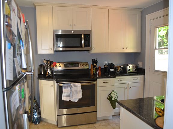 2 bedroom farmhouse style colonial for Rent. 1056 square feet. with New kitchen and bathroom completely remodeled in 2015 with new cabinets, stainless steel appliances and granite countertops. The bathroom has a new toilet, vanity with granite top and tub surround. Other rooms include living room, dining room, sunroom, and partially finished basement with washer and dryer. Nice private fenced in back yard ( new fence in 2016) , covered front porch all on a quiet street, near park and town pool. This is a rare opportunity to rent a completely remodeled house in Longmeadow. House is available for August 1, 2017. no pets, no smoking, renter is responsible to maintain yard and snow removal during winter months. Rent is $ 1,595 per month. Once year minimum lease. 1 year minimum lease,. first last, & security.