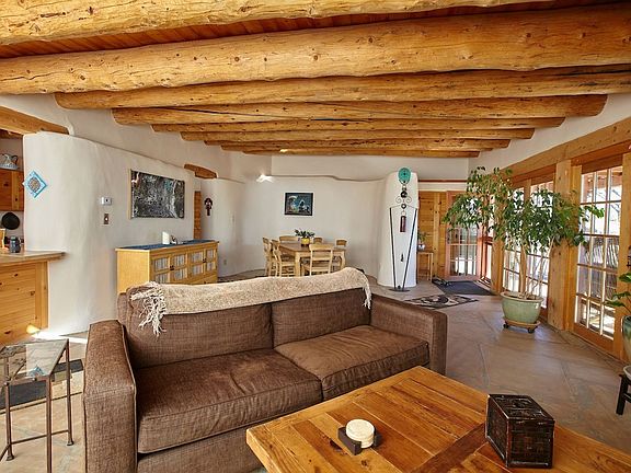 Welcome to Panacea de Taos. This Taos sanctuary is a private one-of-a-kind 2BR, 2-1/4BA, plus studio in 2200SF architect-designed earthship on 2+ unfenced acres at the top of your own arroyo. Furnished (with studio) or unfurnished (no studio), natural wood with traditional viga ceilings throughout, stunning kiva fireplace (natural gas), lush indoor terrariums, vented skylights, large passive solar windows extend the entirety of the house. Spectacular hilltop views, covered portal, 2 flagstone decks. Living Room with dining area for 6, open kitchen, master bedroom with attached 1-1/4 bathroom, walk-in closet, second adobe bedroom with farmer doors, second bathroom with shower. Reading/study area. Separate studio/gym/yoga room (if rented with furnishings) inside a spacious garage with workspace. Furnished with locally crafted furnishings, local art and sculpture inside and out. 2-1/2 acres is unfenced with a steep arroyo to the south and east. Well/septic. Expansive views of the Milky Way from the hot tub or front portal deck with seating and views of Taos Mountain, two additional open decks, BBQ. Attached garage with plenty of additional parking. Private road. 10 minutes to Taos Plaza. 15 minutes to Holy Cross Hospital. 30 minutes to Taos Ski Valley. Appliances include HE washer, dryer, dishwasher, garbage disposal, microwave, refrigerator, gas range, oven, water softener. Fiber optic high speed internet available (tenant pays). Showings available starting Sept. 1, 2025. Preferred lease start Oct. 1, 2025. 12 months lease with ability to extend. Panacea de Taos is a special place. You deserve to be here. Security Deposit amount determined by the owner. For each pet, there is a non-refundable move-in fee of $200 and monthly fee of $35. What your Resident Benefits Package (RBP) includes for $45/month? - $250,000 in Personal Liability Protection - $20,000 in Personal Belongings Protection - Credit Booster for On-time Payments - 24/7 Live Agent Support & Lifestyle Concierge - Accidental Damage & Lockout Reimbursement Credits - And So Much More Property is syndicated by Nomad as a courtesy to owner. Owner will conduct all correspondence and showings. BEWARE OF SCAMS - Nomad will never ask you to pay any amount prior to applying and all payments are processed through our secure online tenant portal direct to Nomad.