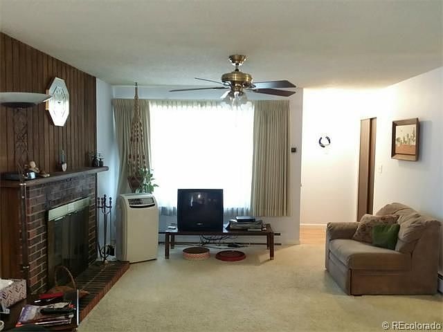 Rare to find three bedroom ranch style town home. Private, end unit. Very clean. Neutral carpet. Gas fireplace. Attached one car garage. Nice, private, fenced patio area. Includes all appliances and washer, dryer. Needs updating. Close to community pool, easy access to schools, parks, shopping. Sold As-Is.