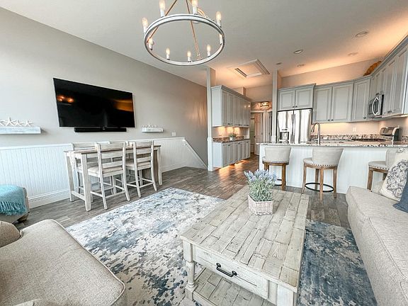Beautiful Views from this high end finish and fully furnished condo with 2 boat docks. Uniquely finished to include a converted bunk room this unit sleeps more than 10 people comfortably. Beautiful custom cabinets , granite countertops , newer appliances, professional painting and custom flooring and high ceilings all accentuate the incredible views, views, views, from the Kitchen/Living area. The upper level also includes the updated main Bedroom and a full bath . The lower level has a converted large bunk room, Laundry room, 2nd bedroom/den , and full bath that are all professionally updated. Sliders lead out to a deck area overlooking the lake that is a mere 30 feet away. Private pool area and your docks are just a short walk from your unit. storage area behind garage door. Furnishings can remain with acceptable offer.