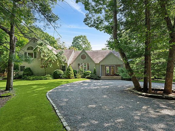In the quiet heart of East Hampton's Northwest Woods, this Barry Brown-designed sanctuary stands like a poem etched into the landscape, blending the best of contemporary living with the raw beauty of nature. Built in 1995, the 3,400-square-foot home stretches across five acres of verdant land, offering a sense of solitude that's hard to find, yet minutes from the pulse of East Hampton Village, Sag Harbor, and the untouched shores of Northwest Harbor. With five bedrooms, four full baths, and a half bath, the home is made for comfort and ease. The primary suite, tucked on the first floor, welcomes you with a quiet simplicity, while a separate wing houses two more bedrooms sharing a bath. Upstairs, two additional bedrooms and a lofted sitting area provide privacy, space, and sunlight. In the heart of the home, light floods the open living area, where vaulted ceilings rise high, a wood-burning fireplace adds warmth, and the broad deck invites you to step outside and feel the world slow down. The flow between the kitchen, dining, and living room is seamless, designed for evenings of conversation and laughter. Outside, the grounds offer even more—a private tennis court, a heated 40-foot pool, and lush, mature landscaping that makes you feel as though you've escaped into a hidden world. The finished lower level extends your space for whatever you need—a gym, a game room, or a quiet corner to retreat. And yet, you're never far from life. Four miles to East Hampton Village, three miles to Sag Harbor, where the finest dining, shopping, and marinas await. With proximity to quiet beauty of Cedar Point Park and over 600 acres of reserve land, the opportunity to breathe in peace is endless. This is more than a home; it's a chance to claim your piece of paradise. The possibilities are boundless—come see for yourself. Schedule your private tour today, and let this estate write its next chapter with you.