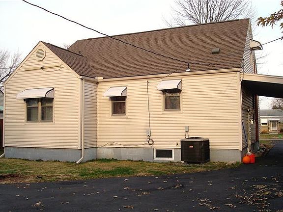 Four bedroom home with 1.5 baths, full basement, four car garage, and a two car carport. In 2007 new roof with tear off, new furnace, new siding on house and garage, and new AC in 2011. Remodeled kitchen with oak cabinets, wood laminate floor, and wainscoting. Updated baths. Enclosed front porch has electric and heat. Fourth bedroom by kitchen could be a dining room. Partially finished basement with rec room, laundry area, and storage area. Wood floors on main level and one upper level bedroom. Quick to immediate occupancy. Range & Refrigerator will be replaced with different models.