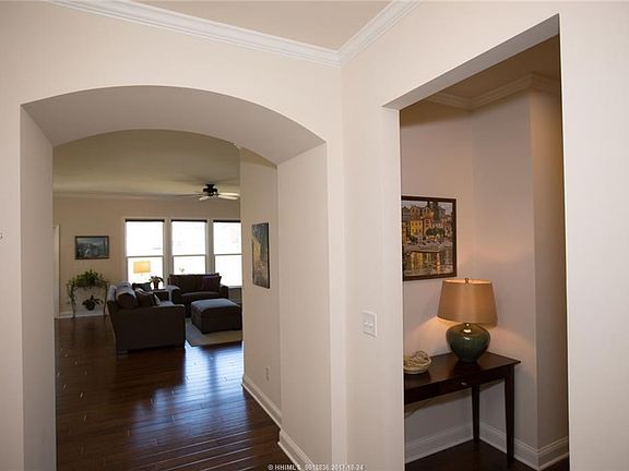 THE HAVEN Rare Find! Meticulously cared for 3Bed/2Bath ABBEYVILLE w/stone elevation. Gourmet Kitchen boasts rich cabinetry, granite, S/S appliances, 5 burner gas cooktop, travertine backsplash & Pantry. Wood floors & natural light flow thru out w/a picturesque view of the lagoon as seen from Great Rm & Owner Ste. Welcoming Owners Ste w/tray ceiling; spa-like bath; double vanities & W/I closet. Split bedrooms provide Owner/guest privacy. 3rd Bed is versatile & can be used as office, music or craft room. Laundry w/lots of storage. Tankless Rinnai; gas grill hook-up; close to Amenities Center