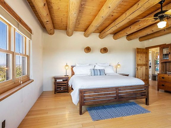 Private Adobe Retreat with Big Mountain Views & In-Deck Hot Tub Tucked away on 2.7 peaceful acres, this hand-crafted adobe home offers a unique blend of traditional charm and tranquil luxury. With panoramic views, artisan finishes, and outdoor spaces built for relaxation, it's the perfect long-stay getaway just outside the heart of Santa Fe. Key Features: Stunning Mountain Views: Take in breathtaking Big Mountain scenery from multiple vantage points, including the private decks and in-deck hot tub. Authentic Adobe Design: Hand-crafted details include all-wood floors, custom cabinetry, and traditional vigas throughout. Open Concept Living: The spacious living, dining, and kitchen area flows seamlessly into a lush garden courtyard ideal for indoor-outdoor living and entertaining. Kiva Fireplace: Cozy up in the corner by a classic kiva fireplace, adding warmth and charm to your evenings. In-Deck Hot Tub: Unwind under the stars with a built-in spa experience, perfectly positioned for both privacy and stargazing. Indoor Entertainment Space: Includes a built-in bar and lounge seating, perfect for casual nights or hosting small gatherings. Flexible Layout: Guest bedroom and office on the main level; private upstairs primary suite with spa-style bath and sunrise-to-sunset views from two private decks. Prime Setting: Enjoy the peace of wide-open land while still being within easy reach of Santa Fe's vibrant cultural and culinary scene. Ideal for extended stays, writing retreats, remote work, or simply reconnecting with nature in style Lease Terms: 1. Duration: This lease is a month-to-month agreement, allowing for flexibility in your stay. 2. Security Deposit: $2000 security deposit 3. Utilities: All utilities (electricity, water, gas, internet, and trash) are included in the rental price. 4. Furnishings: The unit comes fully furnished, including all essential household items (kitchenware, linens, etc.) to ensure a comfortable living experience. 5. Parking: on site parking 6. Pets: pets allowed with owner approval. 7. Quiet Hours: Quiet hours are observed from 10 PM to 7 AM, Monday through Sunday, to maintain a peaceful living environment for all residents. 8. Corporate Housing Coordination: We are happy to work with Corporate Housing daily per diem rates and contract rotations to accommodate your needs during your stay. Additional Information: - Tenants are expected to maintain the property in good condition. - Any damages or excessive wear and tear may be subject to charges.