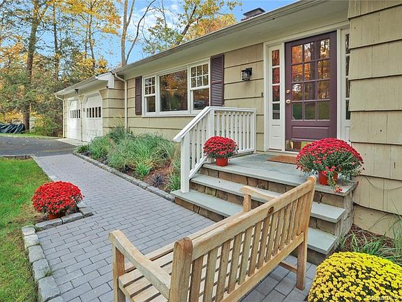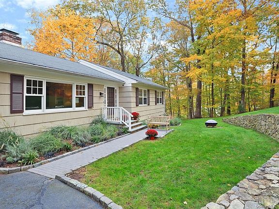 Looking for a quiet culdesac neighborhood only a few minutes to Wilton Center, schools and main commuting roads? This adorable, updated ranch style home is set on a wooded 2 acre property on the New Canaan side of town. Lovely front yard and cobblestone walkway/stone wall will lead you to the front glass door entrance. Step into the main living room where you'll enjoy the cozy wood burning fireplace on those cold winter days. Spacious updated kitchen offers sleek contemporary cabinets, granite counters, gas cooktop/double ovens & full dining area plus the 3 season porch. Enjoy summer entertaining outside on the upper deck located just off the kitchen. Main floor offers 3 good size bedrooms w/generous closet space and hardwood floors. Bedroom baths have been recently updated with new tile, fresh paint & new fixtures. The walk-out lower level is finished with a large family room, full bath and 4th bedroom (currently used as private home office). 2 car garage ground floor entry, plenty of storage, pull down stairs to attic storage. All mechanicals in excellent condition. Oil forced air heat throughout the home and central A/C. New septic installed 2005, 1250 gallon tank. The Town of Wilton offers Award Winning Schools, beautiful Wilton Village shops/ restaurants, Ambler Farm, NRVT walking trails, metro-north train, the Lake Club, the Teen Center, the holiday parades...and so much more! ****NEW ASPHALT SHINGLE ROOF installation scheduled for November/December 2021.