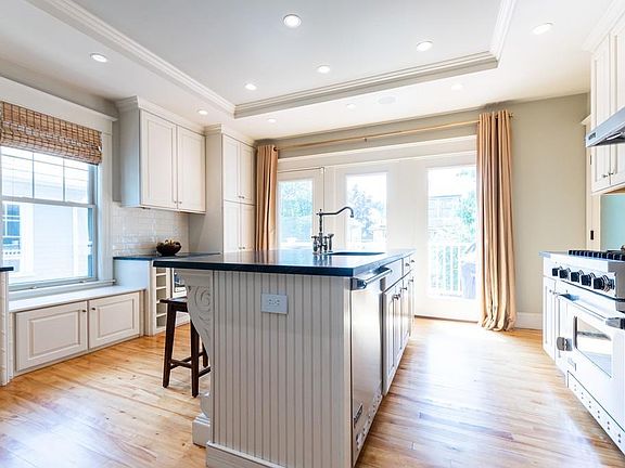 Exceptional JP living in this beautiful pondside upper duplex on a quiet leafy street! Through your private back entry, past the mudroom and perfect half-bath, you'll enter into the expansive, sunlit living area featuring crisp, modern, custom design elements alongside tasteful nods to the past - including a gas fireplace, custom library shelving, bright bay windows, ceiling beams and recessed lighting. Enjoy private decks off both the front and back, & a newly built play/office area. Step up your cooking game with Viking stainless steel appliances, soapstone counters, coffered ceilings and charming trim finishes in the kitchen. Upstairs is your own master suite w/walk-in closet as well as two well-proportioned bedrooms and an additional full bath. Shared large private back yard with room for gardening or playing. Jamaica Pond and the Arboretum on each end of the block, and the vibrant bustling Centre Street shops and cafés are a few blocks away.