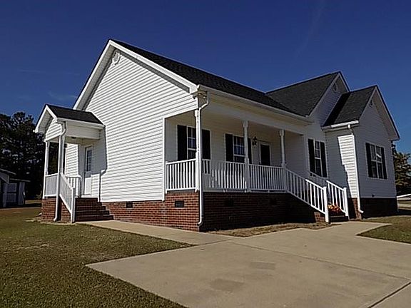 Motivated Seller--One story home located on a large cul-de-sac lot. Detached carport and storage buildings. Large front porch. Deck overlooking backyard has a great view. Master bedroom with walk-in closet. Large master bathroom with linen closet, double sink vanity. New roof 2021. New HVAC 2017. Property located in USDA area for 100% financing. Located between Angier and Coats. Convenient to Campbell University.
