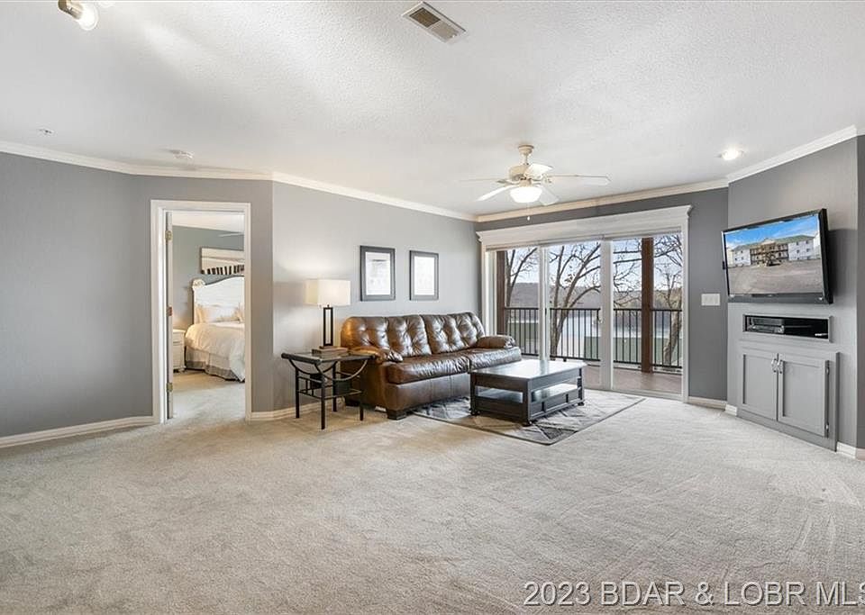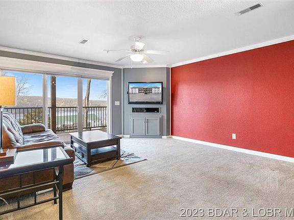 Your Lake Escape awaits! This 3 br 2 bath condo nestled inside the state park on the Lake of the Ozarks is calling your name. Remodeled kitchen with one level granite countertops and custom cabinet doors. Open floor plan with breathtaking views of the state park cliffs from your large screened in deck. Master bath remodeled with large walk in shower. Conveniently located across from the pool, clubhouse & playground this unit is in a great location in the complex. 10x24 boat slip with 6,000 lb hoist & remote is included along with the furniture in the unit! A garage is available to store your car or water toys in. The Grand Glaze Arm of the lake is a great area to ski, tube, wakeboard or just cove out. Catch crappie right off the dock! Or take your boat to your favorite fishing hole. Only 10 miles from multiple shopping/eating establishments by land without traffic hassles. Only a short boat ride to Dog Days, Backwater Jacks, Reserve or Shorty Pants. Best location on the lake!