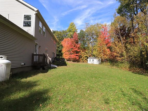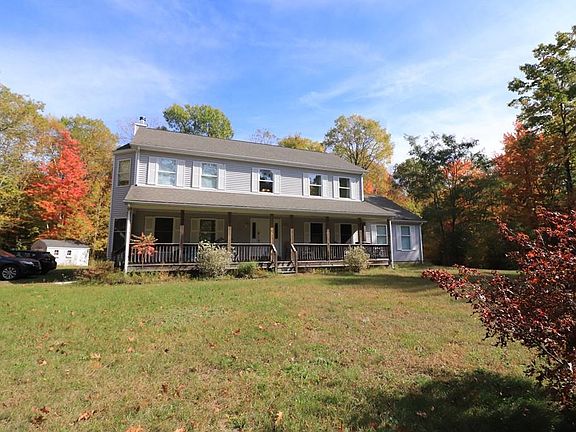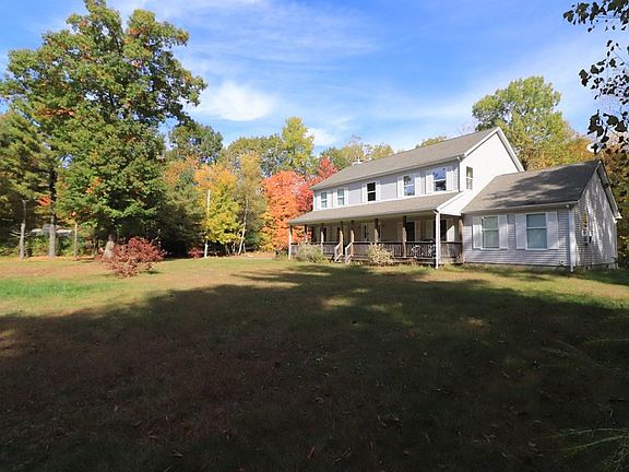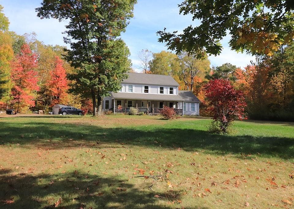 New furnace! And fiber-optic internet has arrived! This spacious colonial sits well back from a quiet road on its 4.3 acres. The accommodating front porch is a great space from where to enjoy the large front yard. An open floor plan on the first floor exposes the generous dimensions of this home, which also boasts an abundance of natural light thanks to large windows. The first floor offers a dining room, a large living room with a pellet stove, large bay window, and a slider out to the backyard, a kitchen, a pantry, a laundry room with a utility sink and a door to the backyard, and a large master-bedroom w/walk-in closet & master-bath. There are 3 more bedrooms, an office, and another full bathroom on the second floor. The pellet stove together provide a renewable energy heating solution to complement the electric heat, along with direct hot water.This home also has a full-house generator