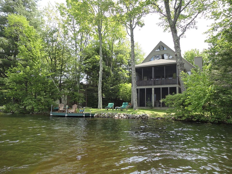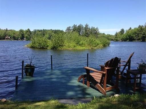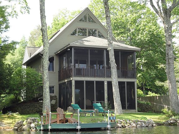 WOW! FABULOUS YEAR ROUND WATERFRONT contemporary home on Peaceful Pine Island Lake. Sitting on 1.77 acres, this has many features you'll want in a home and it's directly on the water with TWO different waterfront lots! Spacious Open floor plan with stunning views looking out to the island. Three levels of living space,3 bedrooms, 2 baths. Gas fireplace, cathedral ceiling,TWO enclosed screen porches, rec room, home theatre, loft office/den, Goshen stone work, gardens,trails. THIS is a rare find!