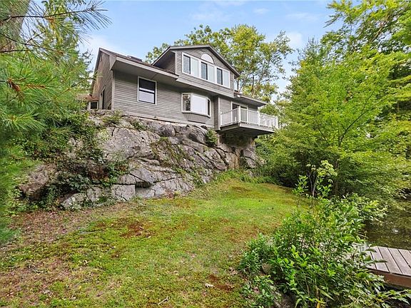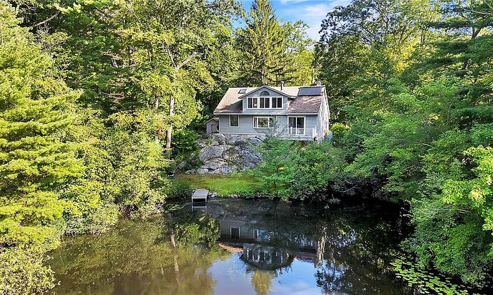Welcome to Hideaway Lake House, a unique waterfront home along Waterman Reservoir’s southern shoreline. Surrounded by trees and nestled in a private inlet, this magical property offers endless inspiration for artists & nature lovers alike. Fish, swim, or simply enjoy the tranquility of the water; explore the walking trail which encircles the peninsula for peaceful strolls among the trees. Inside, the heart of the home is a stunning stone fireplace with a wood-burning insert. The living room’s large picture window captures the beauty of the outdoors, & the dining room offers lake views. The kitchen, designed for a solo chef, is cozy & functional. The home features three bedrooms, including two on the first floor. The primary bedroom includes a private balcony overlooking the lake, while the second bedroom opens to the outdoors through French doors onto a small patio. Upstairs, a third bedroom with a mid-century modern ceramic fireplace offers a versatile space as a guest room, home office, or reading room. Perched on a hill with exposed ledge, this home requires no flood insurance. With thoughtful updates in 2004 & septic system installed in 2007, Hideaway Lake House is as practical as it is picturesque. The property also includes three outbuildings, one of which is a quaint log cabin that has served as a rustic guest house & an art studio. This secluded haven offers a rare sense of peace and connection to nature, yet remains close to everything you need.