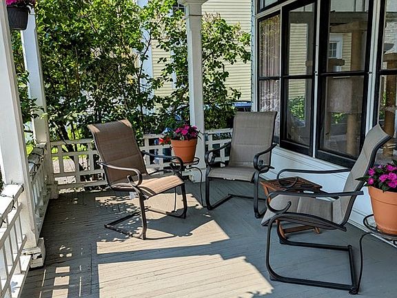 Looking for a gracious home in the City ? You will have all the amenities you want to be close to while the back yard will make ou feel that you are out of the City . Coffee on the front porch and cocktail hour and dinner in you own backyard oasis. Open the front door and you will be greeted by a gracious stairway and foyer. Large rooms with great flow through for entertaining . Th esunroom is a bonus! Newly painted and hardwood floors. The kitchen does not disappoint. Two Pantries, a nearly new dishwasher,upgraded refrigerator and a Viking Gas stove. Upstairs you will find a gym, a walk in closet and a work room,or 4 nice sized bedrooms . One bath down and two upstairs.Electric has been upgraded.Windows 2015. Roof 2011 ish. There are back stairs also. First floor laundry- Dryer does NOT stay. Parking for 10 cars and a garge/storage shed. A fenced yard and a deck and a patio.