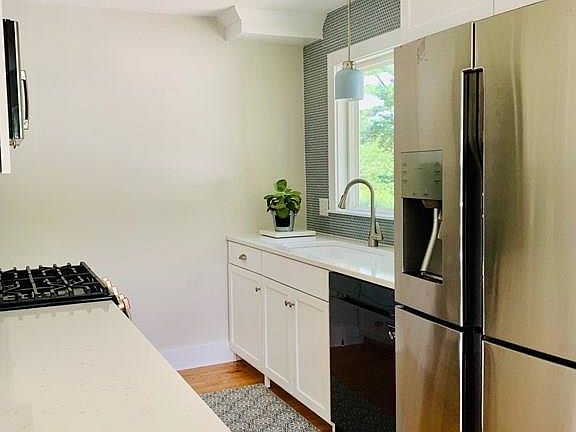 Renovated from top to bottom is this spacious Raised Ranch home. Minutes to downtown and a walk to the bus stop, this light, bright sun filled home will not disappoint. Sporting tiled and wood floors throughout with ship's lathe on select accent walls, it's a homey warm feeling throughout. Galley kitchen offers stainless appliances with counter seating which is open to a generous dining area with sliders to a rear deck. The living room is large and perfect for everyday living and entertaining. Three bedrooms and a full bath complete the first floor. Lower level family room has beautiful custom built-ins and access to the large,flat and partially fenced back yard - it's the perfect playground. A fourth bedroom/office, 3/4 bath and laundry room are also on this level. Amenities are many and include propane heat, central AC,2 car garage and more. A must see for the discerning buyer.