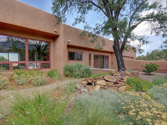 Perfectly sighted to capture extraordinary Views of Sandia mountain, Jemez and beyond! All Adobe custom built by Owner in 2000. Enjoy the natural light thru huge windows. Lovely front courtyard, rock fountain, fruit trees & raised beds on drip system. Open Floor Plan perfect for entertaining. Primary bedroom accessed thru custom barrel ceiling entry is separated from other bedrooms. All the Southwest style you have been looking for, beams in Great Room, tongue & grooved ceilings in Bedrooms, Kiva style fireplace. Ceiling fans in all rooms. Large walk-in closets + storage room in Garage. 2.5 acres level usable land with 1/2 acre Fenced. Horses allowed. Close access to hiking trails in National Forest. (see attached Special Features List)
