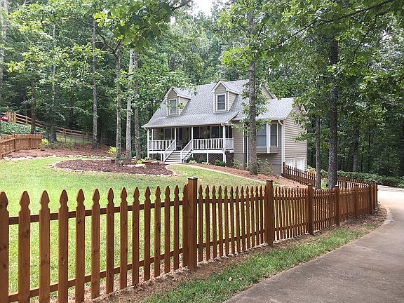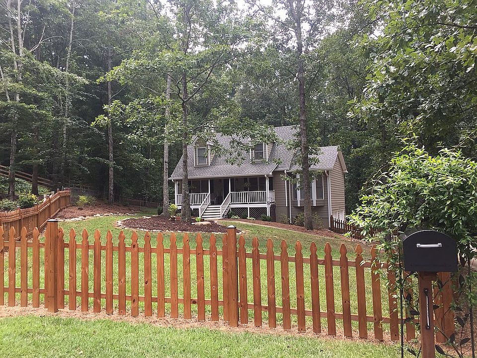 Large cul-de-sac lot (over 3/4 acre) that backs up to a wooded land lot feels very private and quiet. Safe, picturesque neighborhood minutes from I-75 and downtown Cartersville. Huge fenced backyard with gravel pathways, perineal beds and deck. Picket fenced front yard with large flower beds and perennial shrubs. Productive fruit trees (blueberry, apple, and peach) as well as thornless blackberry and mature muscadine grapes on property line trellis. Granite countertops throughout, updated lighting, ceiling fans, and fixtures throughout. Ample kitchen storage and counter space. Garden jetted tub in master bath with separate shower. Cozy floor plan with master on main. Large walk-in closets in every bedroom. Attic and walk-in eave storage. Large covered front porch. Large bonus finished basement area for gym, playroom, office, or 4th bedroom. New heat pump system installed 9/30/19. Oversized 2 car attached garage with storage/work space. Underground utility lines.
