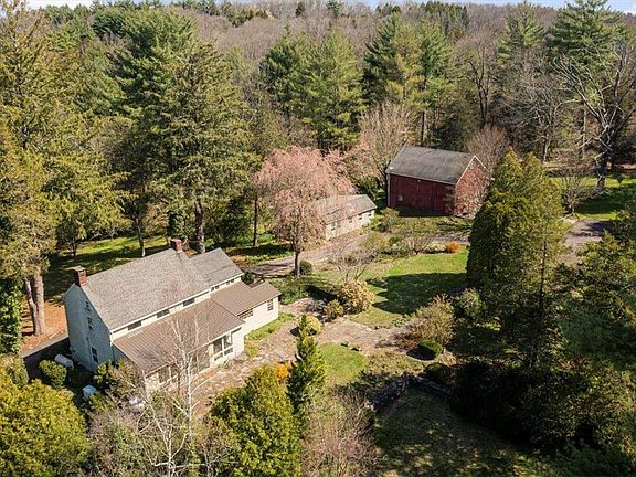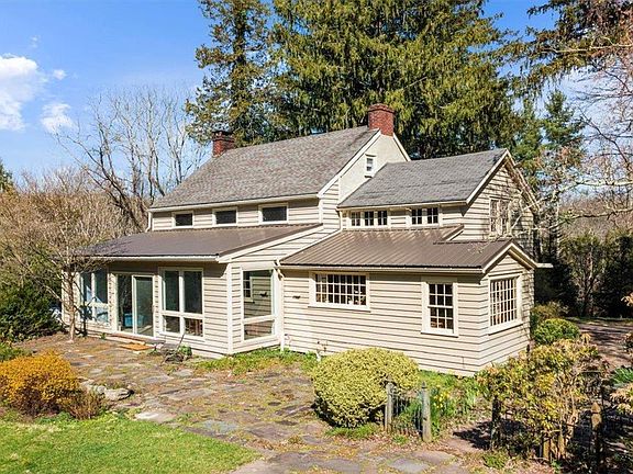 Nestled amidst the serene beauty of Tinicum Township on one of its most coveted country lanes awaits a timeless treasure. “Tinicum Thyme” is a c.1870 stone farmhouse exuding rustic charm and offering endless potential. Embraced by 9.45 conserved acres of mature landscaping and woods, this enchanting property is a secluded retreat. The large living room showcases the high ceiling with exposed beams, walk-in fireplace, random width floors, and deep set windowsills. Butterfly pie stairs lead upstairs to the main bedroom with half bath, den, and laundry room. The spacious and bright kitchen with cozy breakfast nook looks out to the verdant landscape framed by large windows. The dining room or den with hardwood floor, fireplace, and built-ins invites cozy gatherings. The 2nd bedroom upstairs is en suite with new sink and toilet, and a tub. The family room with vaulted ceiling and exposed beams is bright with large windows and glass slider, a passive solar addition to the house. Additional accommodations await within the barn, where a 1-BR apartment offers 780sf, complemented by studio space and storage areas. The separate studio cottage offers kitchenet, full bath and deck. These two outbuildings share an automatic generator, well and septic. Whether as rustic weekend getaway or as a canvas for redesign and modernization, this timeless retreat in Bucks County beckons with the promise of endless possibilities. 90 min NYC, 75 min Philadelphia, 30 min Lehigh Valley.