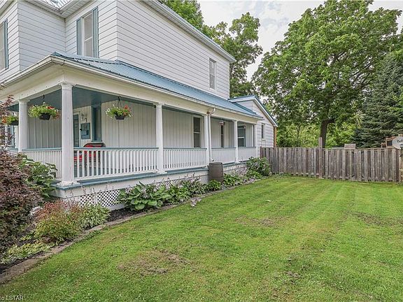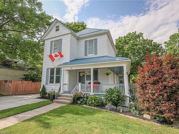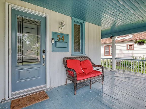 Welcome to 54 Regent Street; a gorgeous century home on a dead end street with amazing character and features that are sure to impress. The home is situated on nearly half an acre and backs onto a lush ravine that gives you ample privacy. As you walk upto the home you will be greeted with a beautiful wrap around veranda; perfect for enjoying morning sunrises with coffee. Once inside, you enter into the spacious foyer with french doors to a large living room with various layout possibilities. Ample natural light from multiple windows and space has been tastefully updated while maintaining character. From here you have a dedicated dining room and a renovated kitchen (2017) with granite counters, breakfast bar and stainless steel appliances (2020). Main floor laundry and 2 piece bath(2017). On the second floor you have two bedrooms, a 4 piece bath with heated floors, and a loft currently used as an office, but with potential to be a 4th bedroom. Finally, the third level features a large primary bedroom with his and her closets. Outside there is a brand new 14x26†drive-through garage which can double as a shop, set up with heat, a 240V outlet, sub panel and automatic garage door openers on both ends. Use as a garage or added man cave. Upgrades outdoors continue with a 2 tiered deck (2019) and shed (2022). Steel roof (2014), basement insulation (2015), various windows and doors (2017/2019), sewer line from clay to PVC (2021), concrete driveway (2022) and a new AC unit (June 2023).