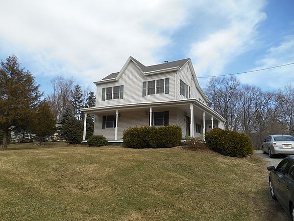 This colonial sits majestically on over one acre of property with its wrap around porch this home has great curb appeal. Brand new septic. First level has living room/dining room combo, large eat in kitchen and fullbath. Second level has three bedrooms, office/laundry room and full bath plus some wood floors on this level. Not on a main road it sits privtely just off. Central air conditioning, hot water baseboard heat. Beautiful, must see! Minutes to NYC express park and ride.