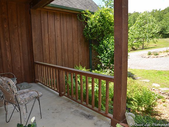Beautiful 2 story home with porches on front and back.. Beautiful view of Sugarloaf Mtn out front and Little Red River in back . Back has 3 decks with stairs to river. Interior(floors) Australian cypress through out. Slate in entry, kitchen, eating/dining area, laundry. 1/2 guest bath. Master bath has ceramic tile floors with slate vanity(double sinks). Slate surrounding oval whirlpool tub and slate shower. Kitchen has limestone countertops with strip of slate for accent. Laundry has limestone counter tops as well. Upstairs bath has ceramic tile floors with coordinating ceramic tiles vanity(double sinks). Whirlpool tub as well. Bathroom has entrance in BR #4 and entrance off hall for other rooms to have access. Extra room off BR#3 perfect for study/office.. All interior walls are textured. Partially finished room over double garage. Entire home has 2 in wood blinds, excluding back doors 1in. Anderson doors and windows. Solid wood interior doors. Deadbolt doors on front and rear. Stonework on gas fireplace and front of breakfast bar. Majority of furnishings will remain in home.