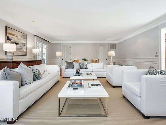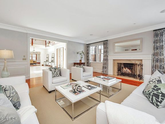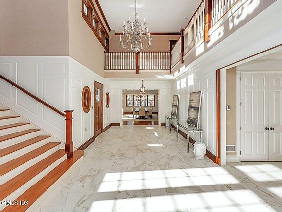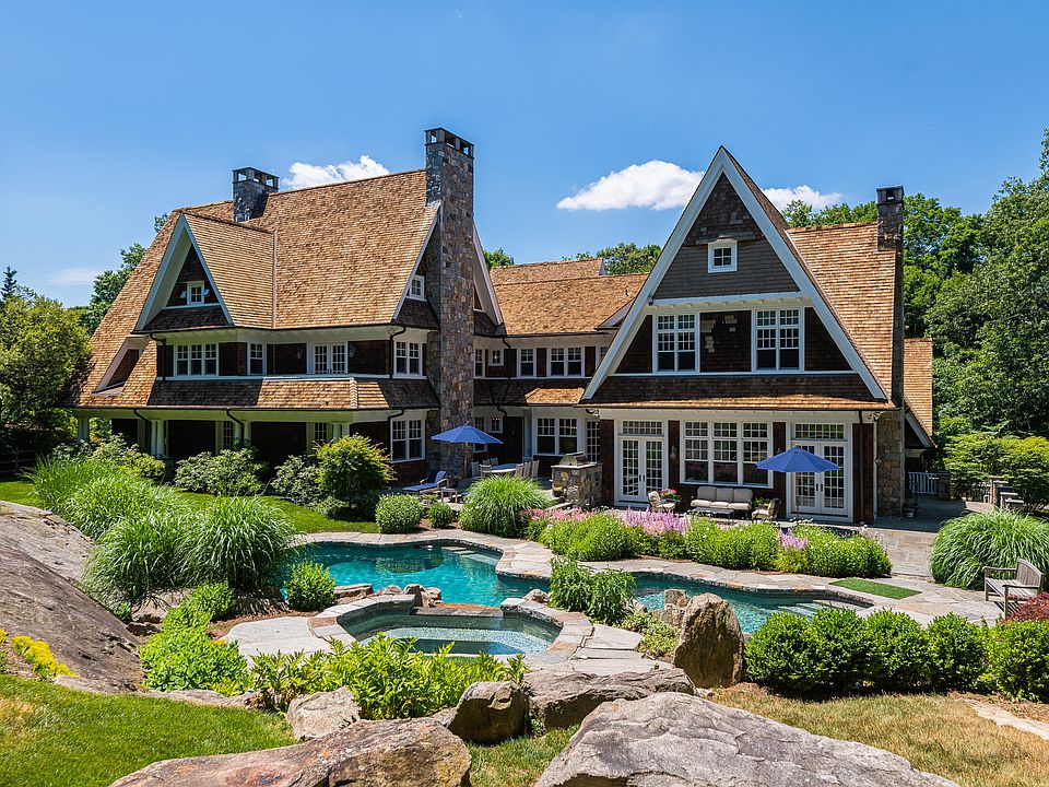 Refreshed and updated decor, this prominent 5/6 bedroom, 7.2 bath Shingle style home sits atop 3 quiet acres on a private mid country lane. Designed by R. Granoff, this masterpiece of modern New England architecture integrates beautifully with the natural surroundings, pool and spa. Enter via the light filled and recently renovated grand foyer with soaring 25' ceilings, porcelain floors and custom millwork. Flanking the entrance you'll find a bright formal dining room that will accommodate the largest holiday gatherings and a similarly scaled living room. At the heart of the home is a new gourmet kitchen with breakfast area adjoining a spacious family room with custom built-ins.
