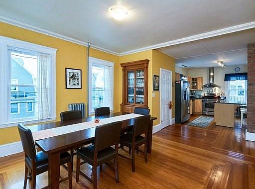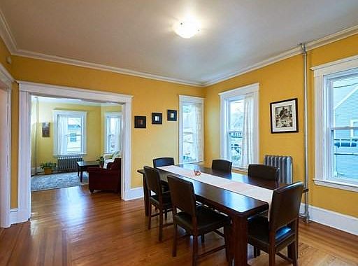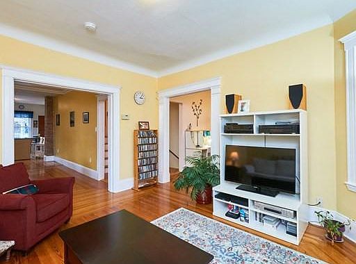 Lovely, renovated, 9 room duplex located 1 block from new Ball Square Green Line, 2 blocks from Minuteman bike path & 10 minute walk to Davis or Porter Squares.The main level inc. open living, dining & kitchen w/southern exposure. Updated kitchen has granite countertops, lrg island, SS appliances, a walk-in pantry & opens to a party size deck. 2 bonus rooms on this level inc. a study & sunrm/playrm. The wood flrs, original china cabinet in dining rm, wooden stair banister & exposed brick offer warmth & period charm often removed in renovated homes. The bathrooms are tile & the bedrooms are huge with great closet space. 4th bedroom is currently used as a laundry rm which the owners have enjoyed having on the bedroom level. Laundry could be relocated if you need a 4th bdrm. Two parking spaces include one garage space. Half basement for storage w/easy walk out for bikes. Besides the private deck there is a common yard & patio area. Across the street from Benjamin Brown Elementary School.