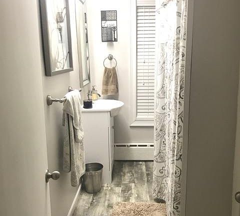 This is a 1 bedroom , first floor unit with living room,huge updated eat-in kitchen including cabinets and splash wall with a new dishwasher, 1 updated bathroom including new toilet, sink, floor, and shower wall. There is a carpeted side enclosed porch. Also has Front porch, Huge rear backyard (maintained by owner), and off street parking. basement space included. Basement storage and Laundry and dryer machines..washer dryer hook-up is also available in unit.